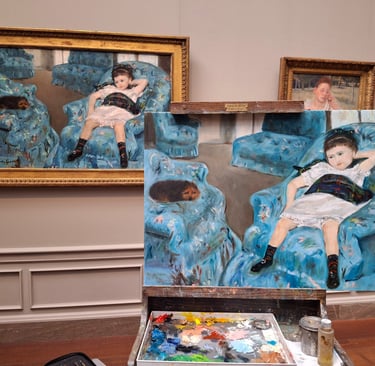 In the Fall of 2024, the National Gallery of Art in Washington, DC, accepted me into their copyist program, allowing me to paint on-site in the museum. This prolonged, in-person study with the masters has been essential to my development as an artist. Come watch me paint on Wednesdays at the National Gallery and visit Instagram for my current master study project.
